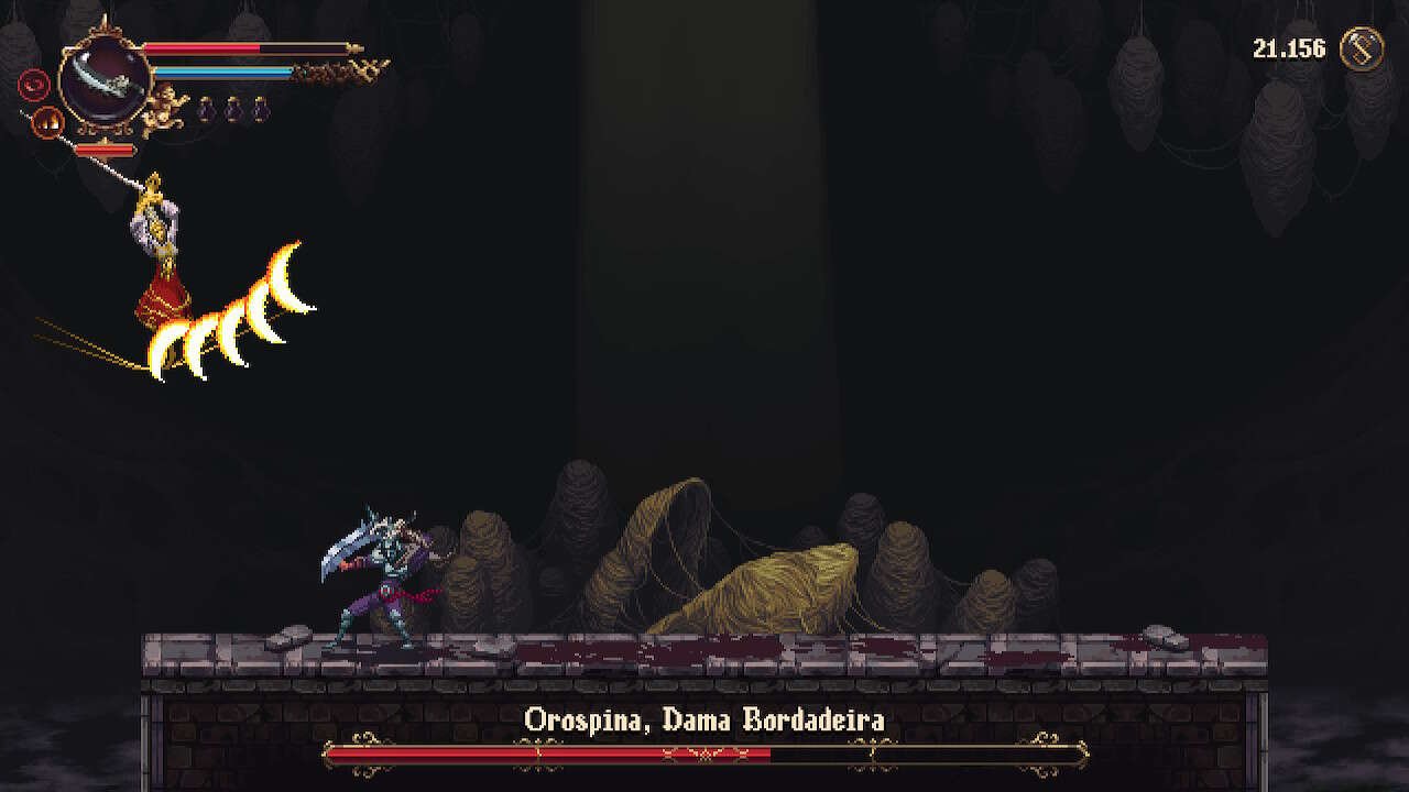 Um dos meus elementos favoritos de jogos do estilo metroidvania é a exploração, e nisso Blasphemous II também não decepciona. A exploração aqui é bastante recompensadora pois você sempre encontrará novos itens e elementos para a sua personalização ou upgrades, aumentando o poder do Penitente – algo que, acredite, você vai querer, para encarar os difíceis chefes e mesmo atravessar partes do mapa infestadas de monstros. Temos também as habilidades conquistadas ao longo da história e que vão te dando acesso a novas áreas, como esperado de um jogo do estilo.