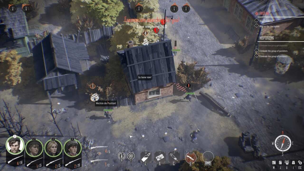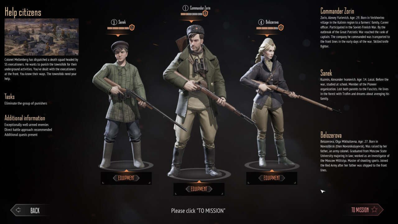 Isso porque Partisans 1941 não permite que você vá com todo o seu grupo, dando a opção de escolher entre 3-4 pessoas. Além de que os recursos são extremamente limitados e não tão fáceis de serem encontrados. É importante que o jogador entenda as habilidades dos seus personagens e crie seu estilo de agir, seja ele stealth, usando disfarces, distrações e armas que não façam barulho, ou a força com granadas, ataques letais e submetralhadoras.