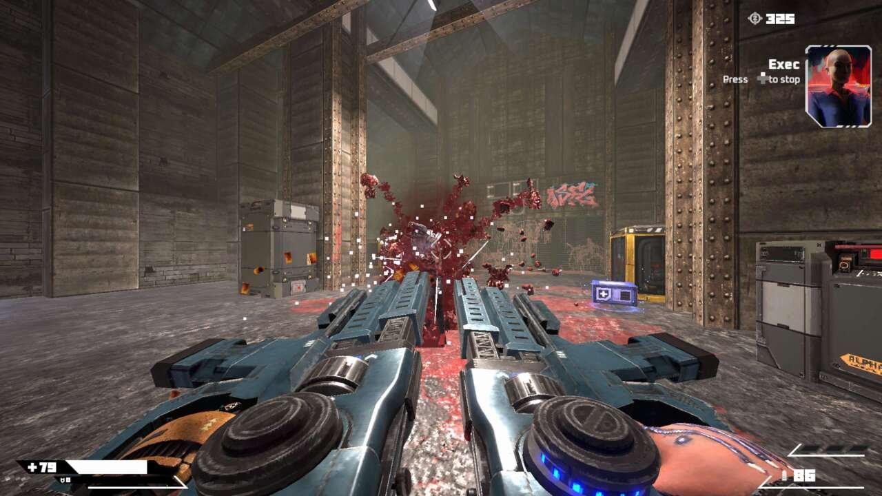 Assim como em outros boomer shooters, a jogabilidade é o ponto mais crucial da experiência. Uma gameplay bem cadenciada se faz necessária para que o ritmo da campanha flua de maneira divertida e engajante. Turbo Overkill consegue entregar uma jogabilidade frenética, com combates brutais, trechos de plataforma que exigem do jogador um bom domínio dos comandos, com desafios que vão desde correr pelas paredes a atravessar grandes áreas com um gancho.